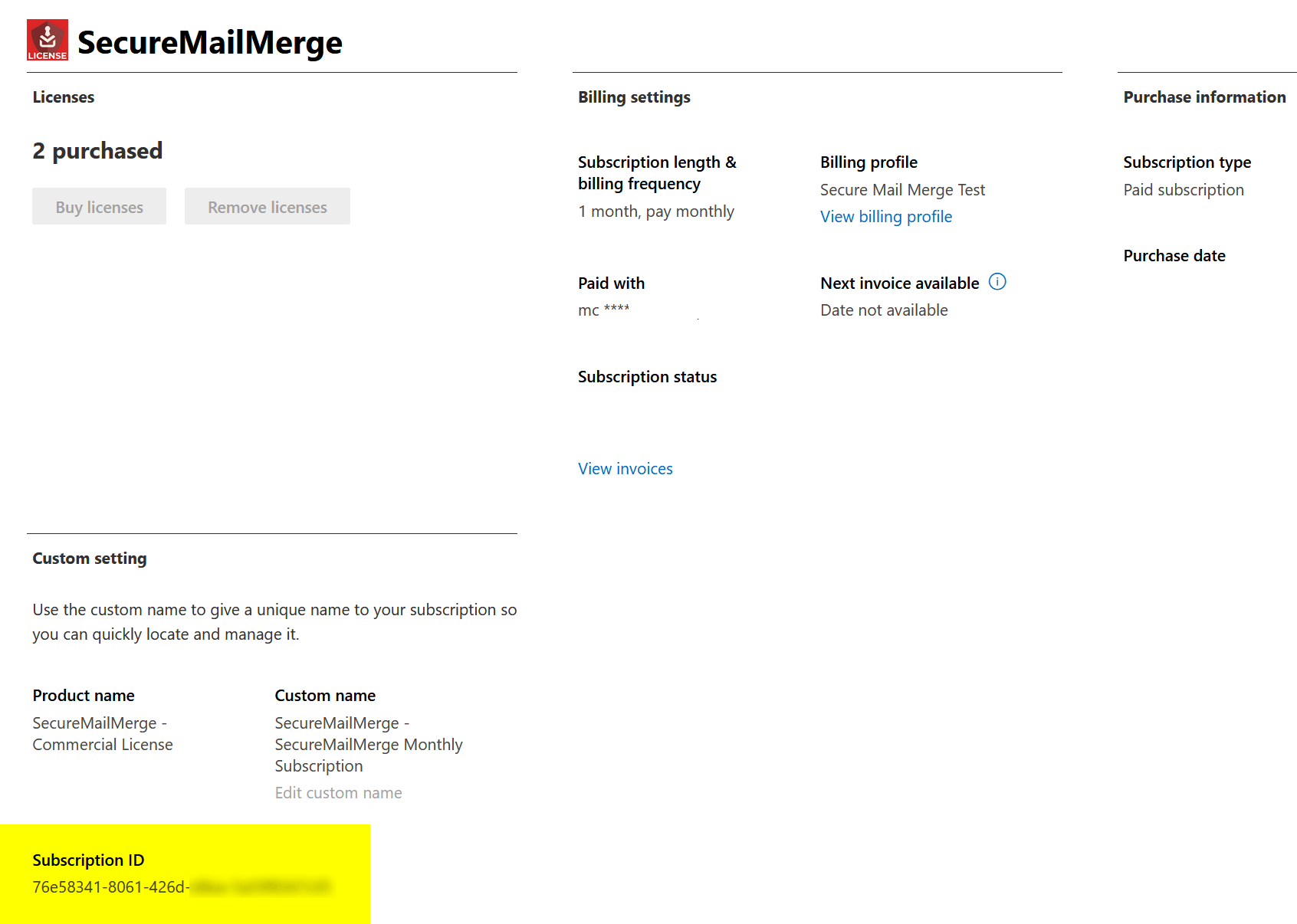 - Clique sur l’abonnement SaaS SecureMailMerge récemment acheté.
